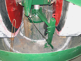 在原來設(shè)備的基礎(chǔ)上,又增加一套刮板裝置,主要是讓料層永遠保持4-5公分,只有在這種狀態(tài)下,壓料效果最佳。并且,能把細料迅速清理出碾槽。