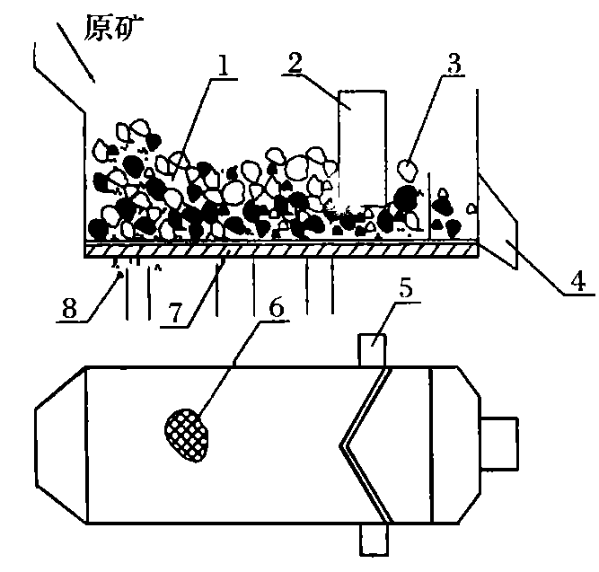 1、礦物分層區(qū) 2、V型分隔板 3、精礦區(qū)